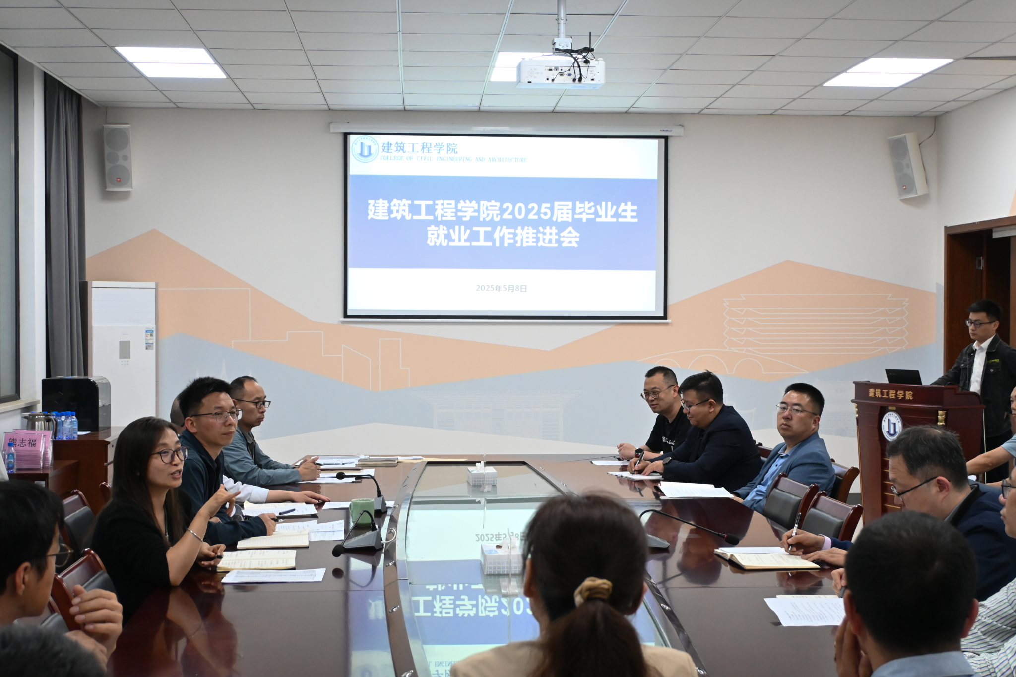 党委副书记杨智慧首先通报了学院2025届毕业生就业工作整体情况,结合当前就业市场形势和专业特点,分析了毕业生在求职过程中面临的主要问题,并部署了下一阶段就业工作推进目标和任务
