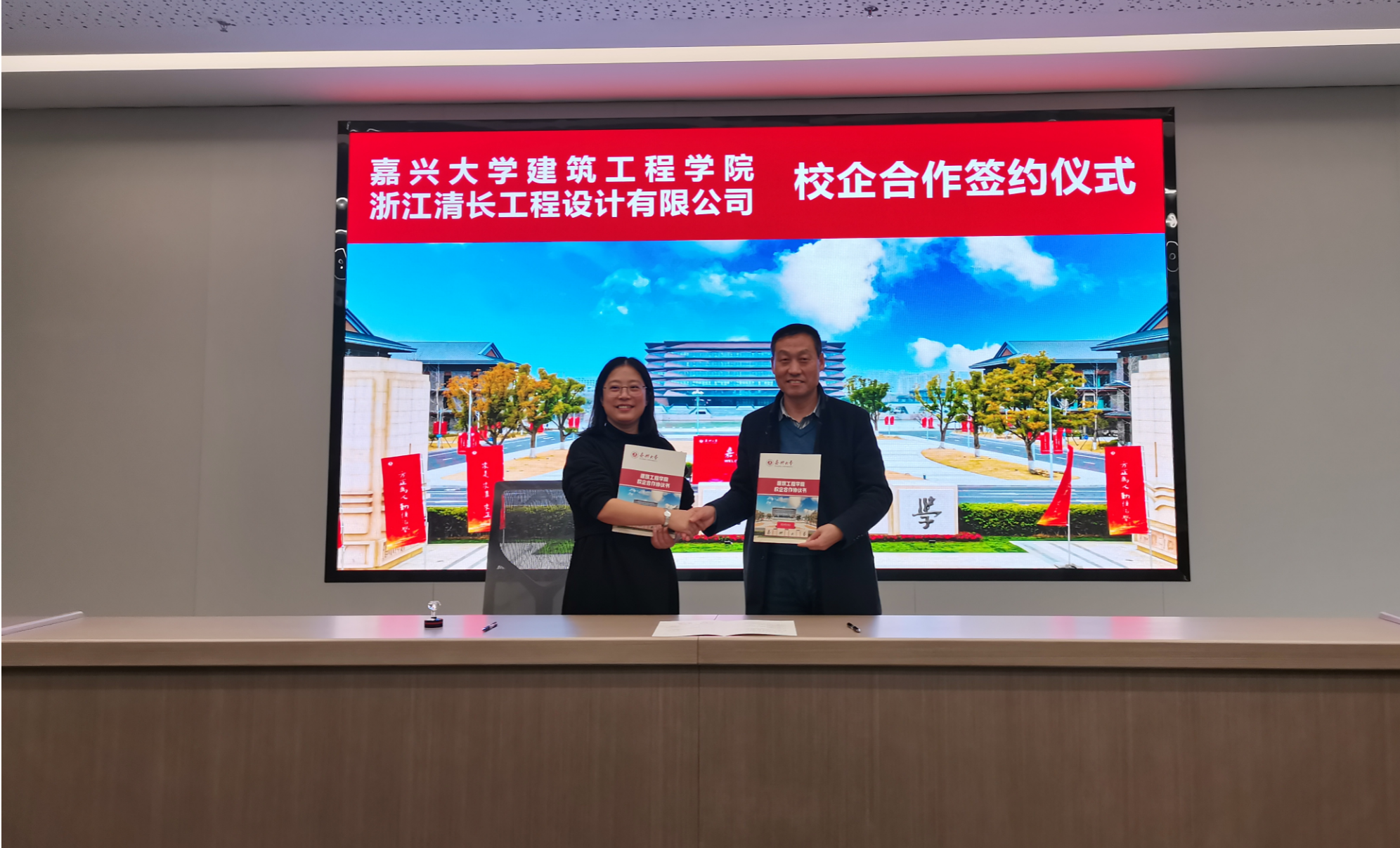 2002届房建专业校友徐璟清爱心捐赠仪式在浙江清长工程设计有限公司举行。学院党政领导参加了仪式。